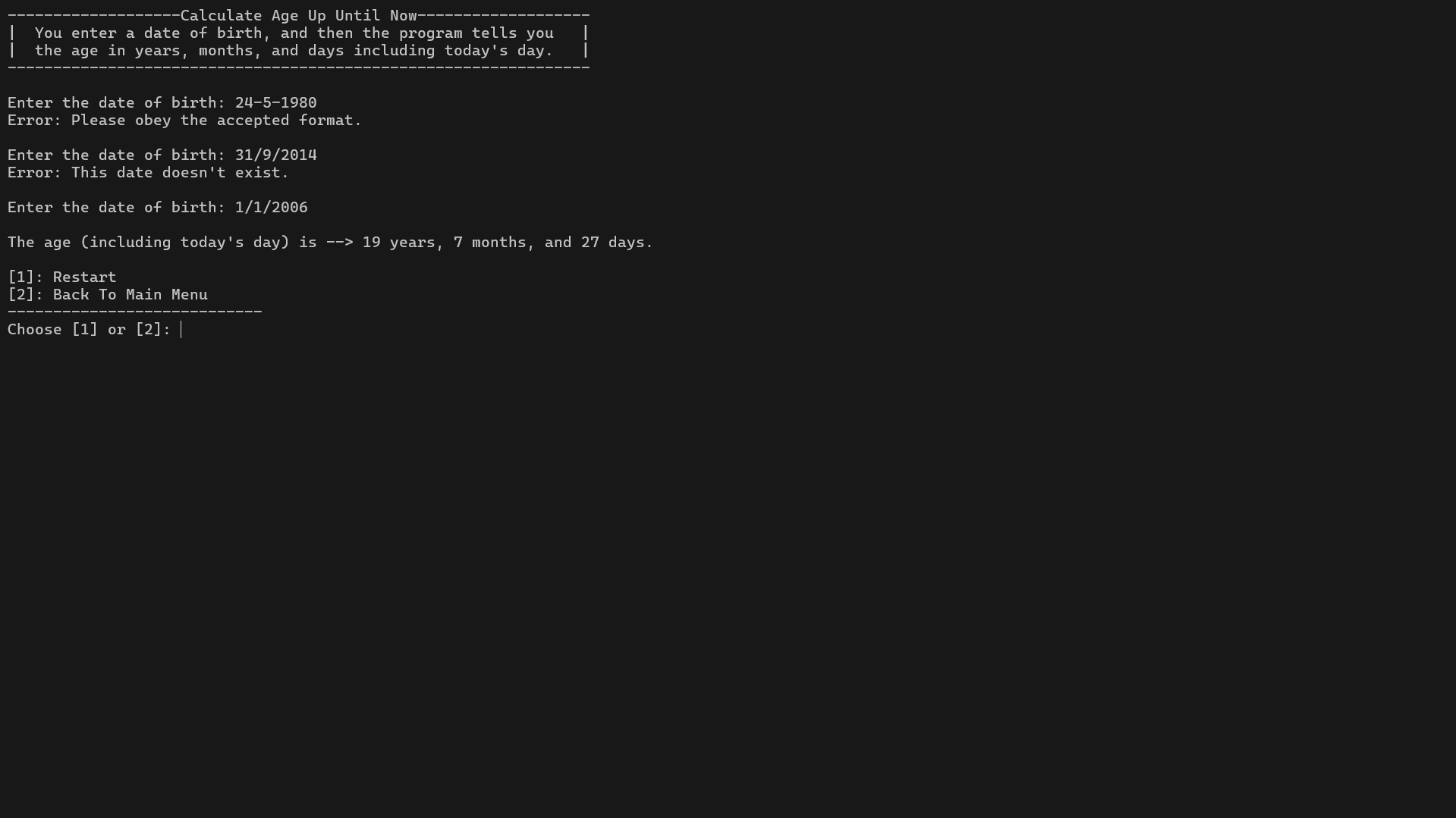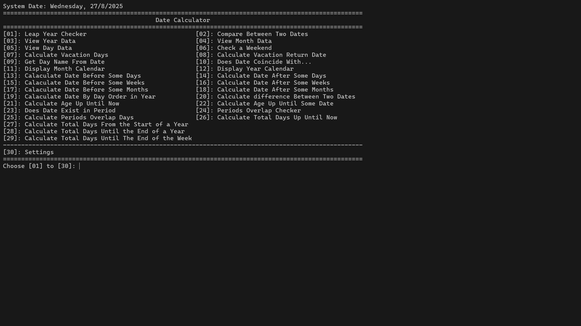 - Built a console-based application that turns raw date operations into an accessible, menu-driven tool.